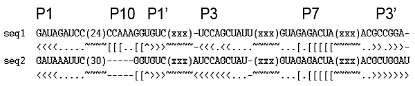 - For the two pseudoknots, P3-P7 and P1-P10, P7 and P10 are marked by '[' and ']';
