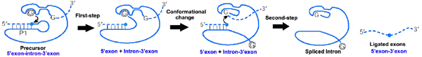 reaction, the 3' OH group of the upstream exon in P1 is aligned to